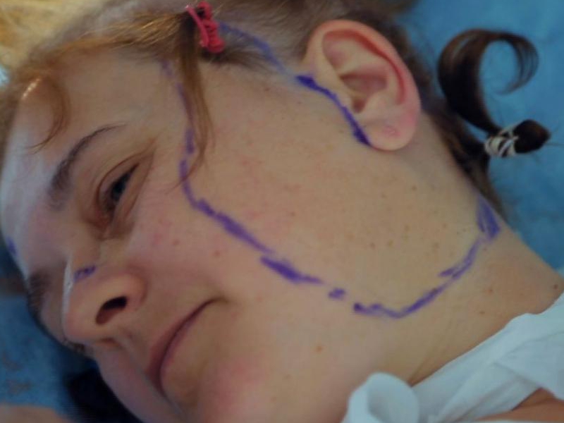 Перед коррекцией лица Галине нанесли специальную разметку, необходимую для успешного проведения операции